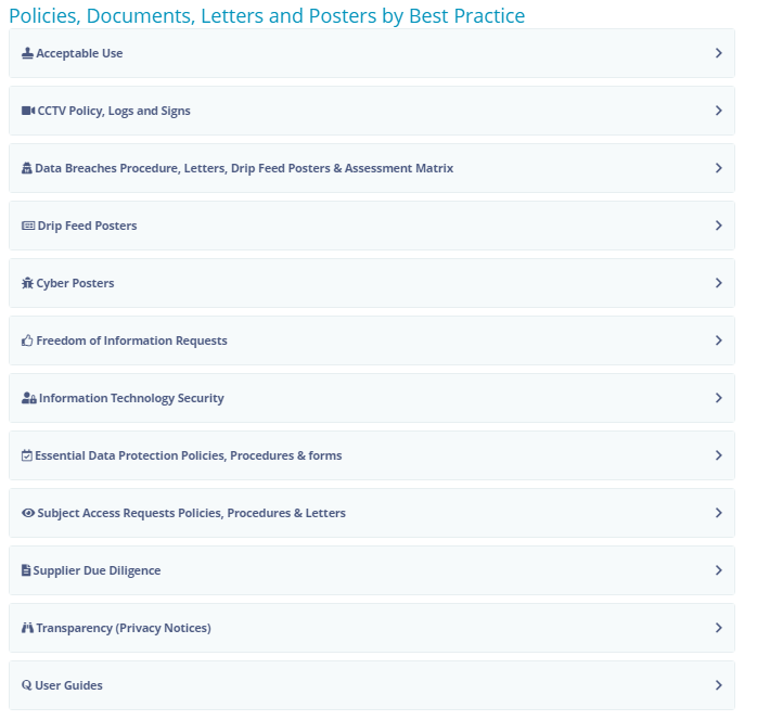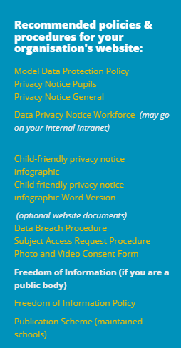 There is a highlighted area with recommendations of policies for your organisation's website and information about us, as your Data Protection Officer, that you should include on your website.